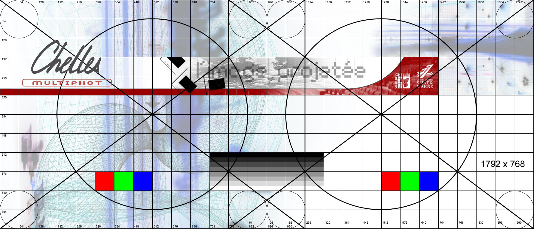 Vidéoprojecteurs 1400 x 1050 pixels et un recouvrement de 12,5 % la mire est sur ce lien.