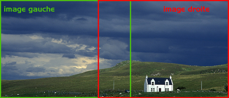 L'image droite softéeEn numérique un logiciel comme Mobjects, avec son module Add on blending, permet la diffusion d'images panoramiques (images fixes et vidéo); la découpe se fait de manière logicielle avec une répartition des images sur chaque sortie vidéo. En argentique la solution reste le travail au banc titre avec une caméra registrée.